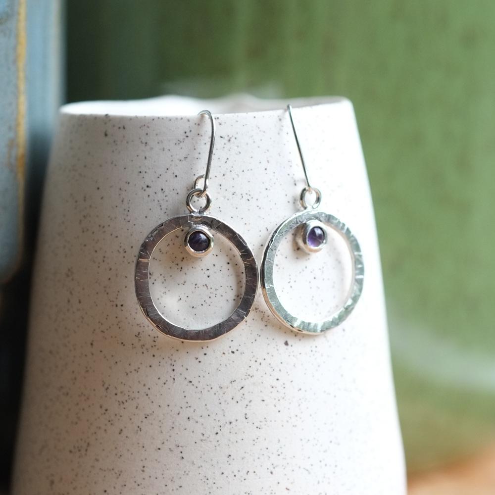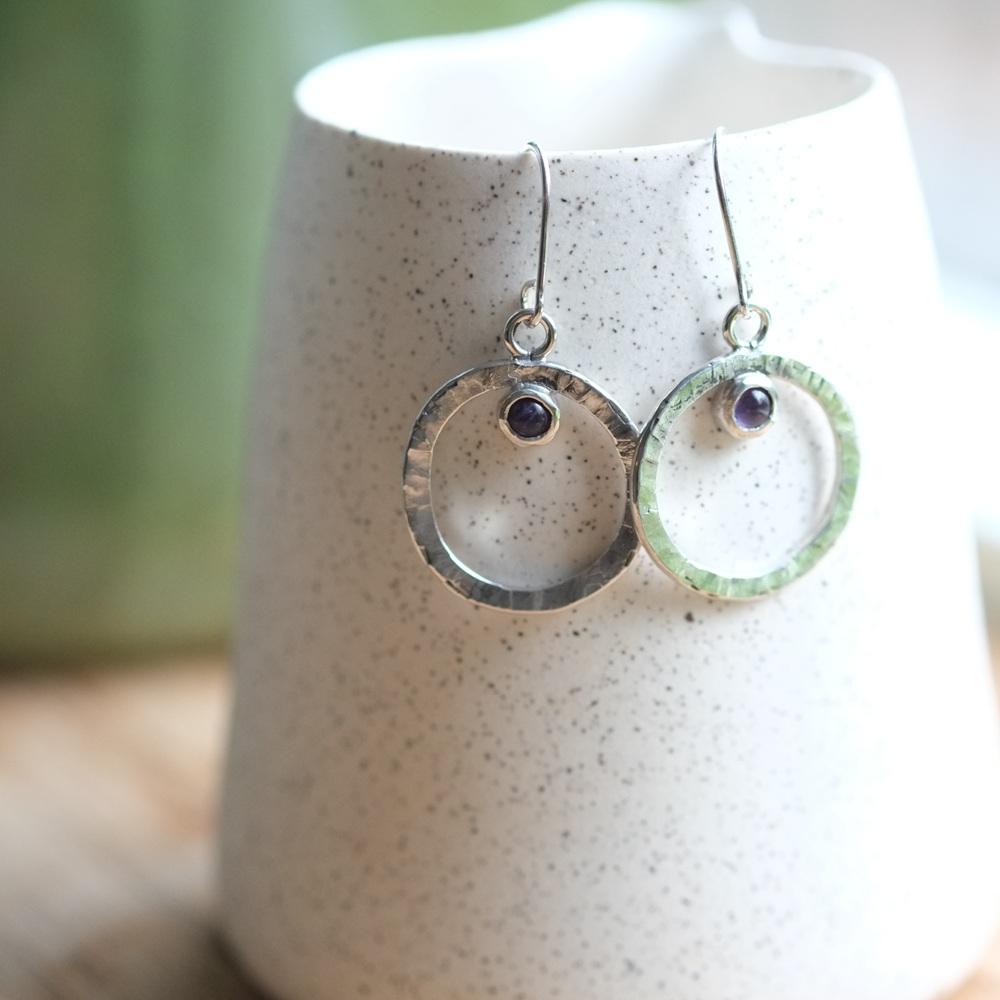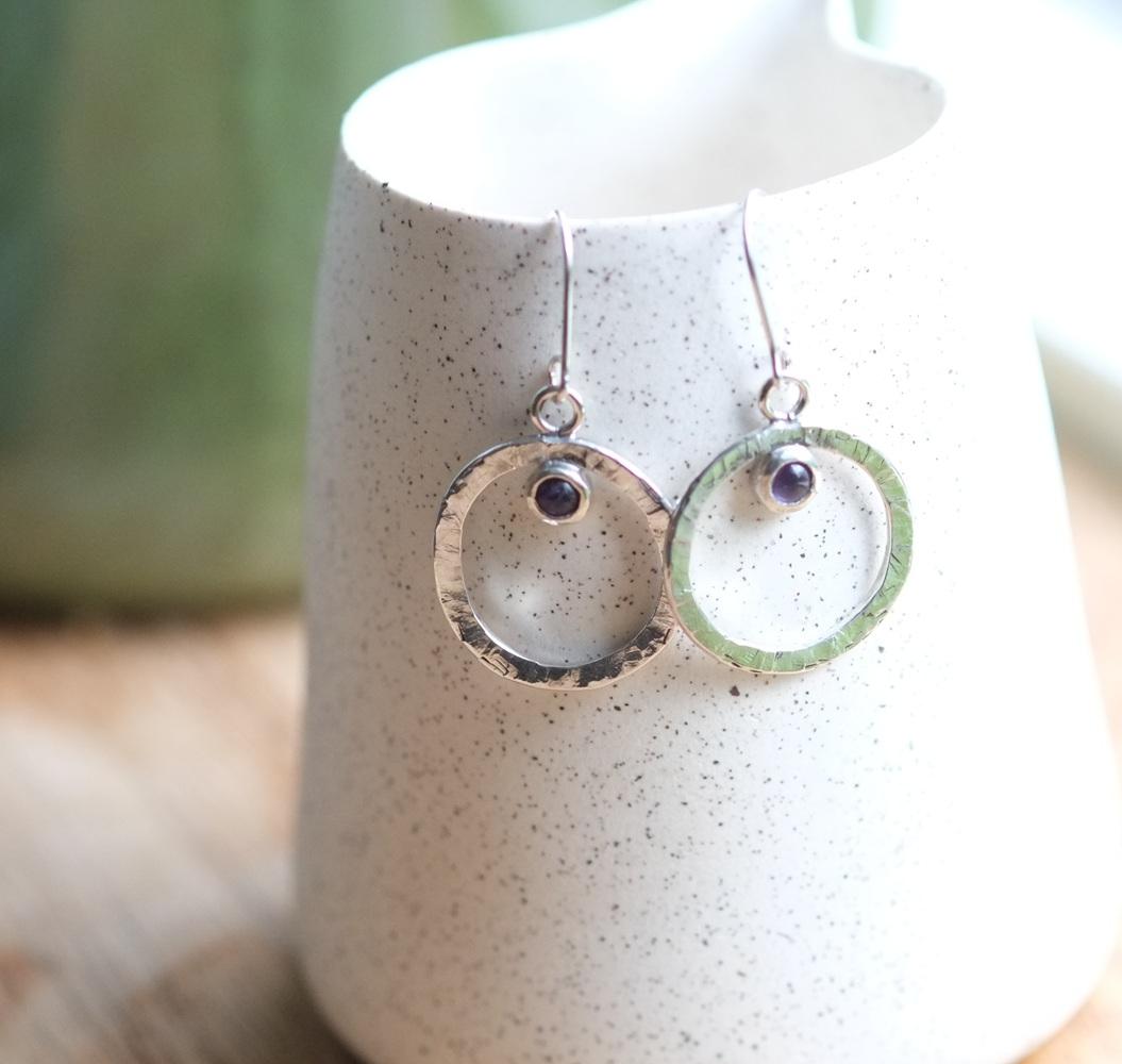 Handgemaakte zilveren – hang- oorbellen met amethist steentjes